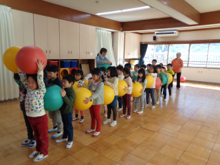 教育長先生が年長組バランスボールを参観&参加